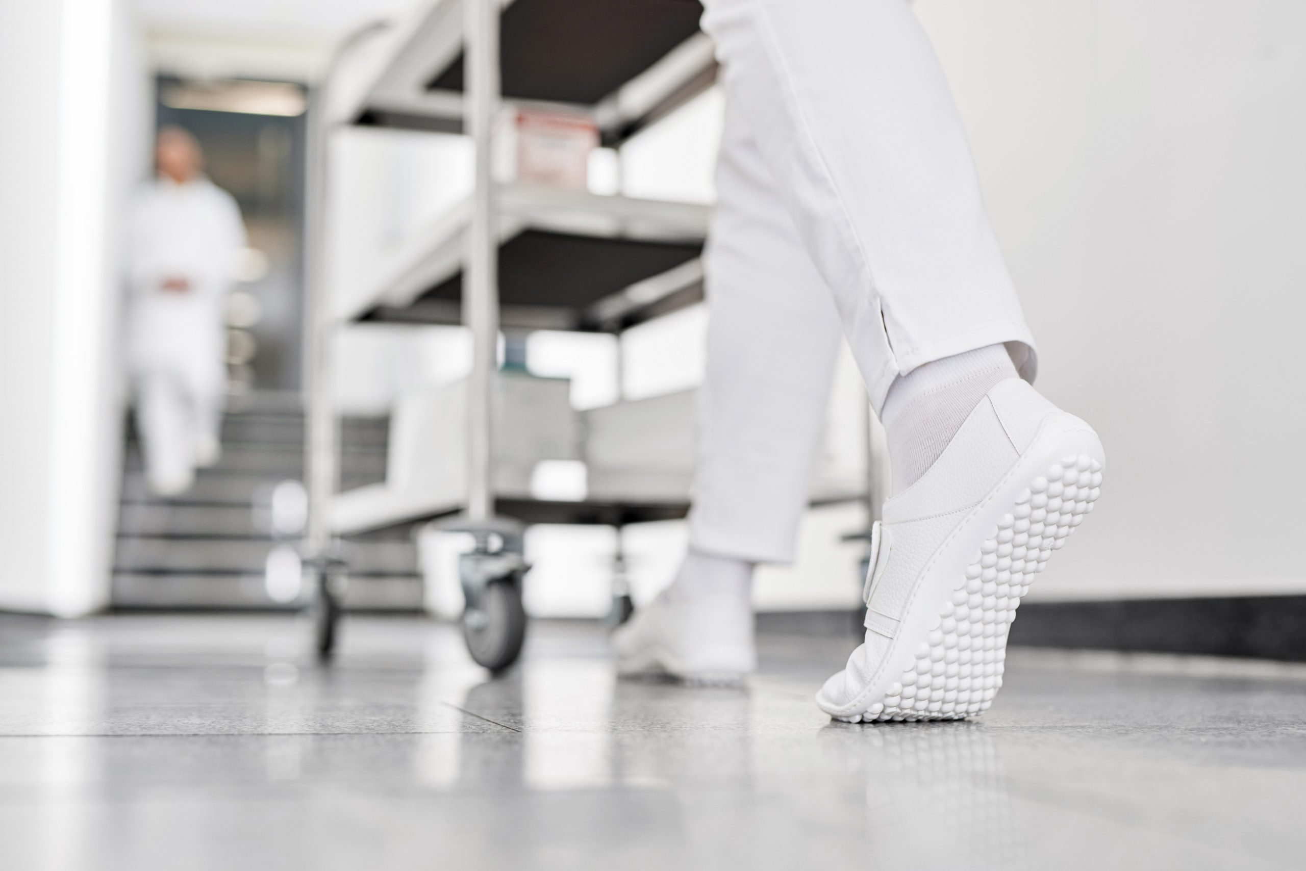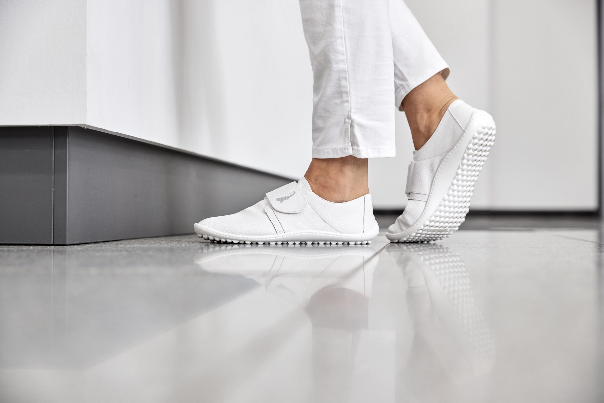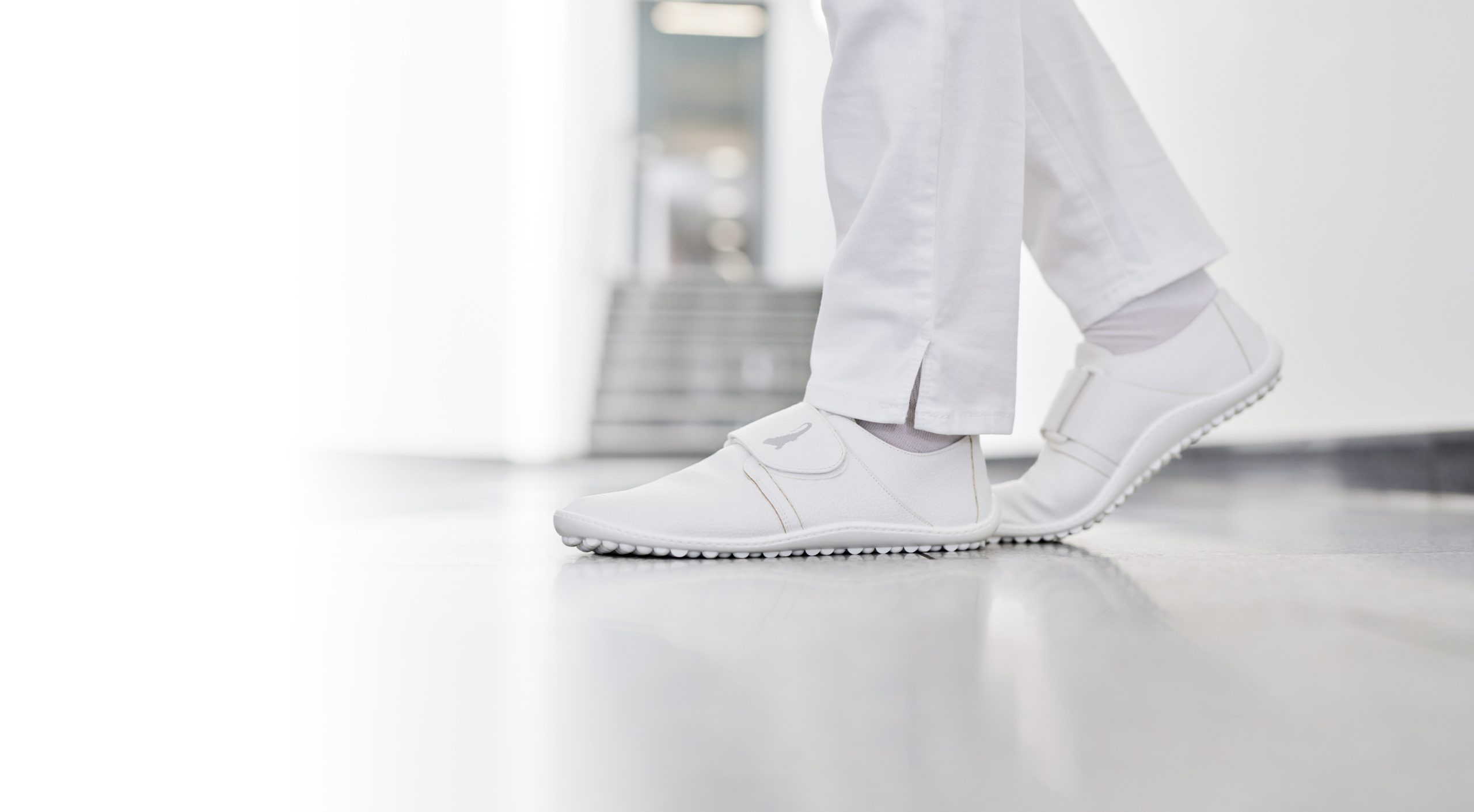 leguano care shoes are specifically designed for healthcare workers. These white shoes are disinfectable, washable, non-slip, lightweight, and individually adjustable with velcros. The upper of the shoes is water-repellent. With every pair, you will receive a pair of socks for free.
