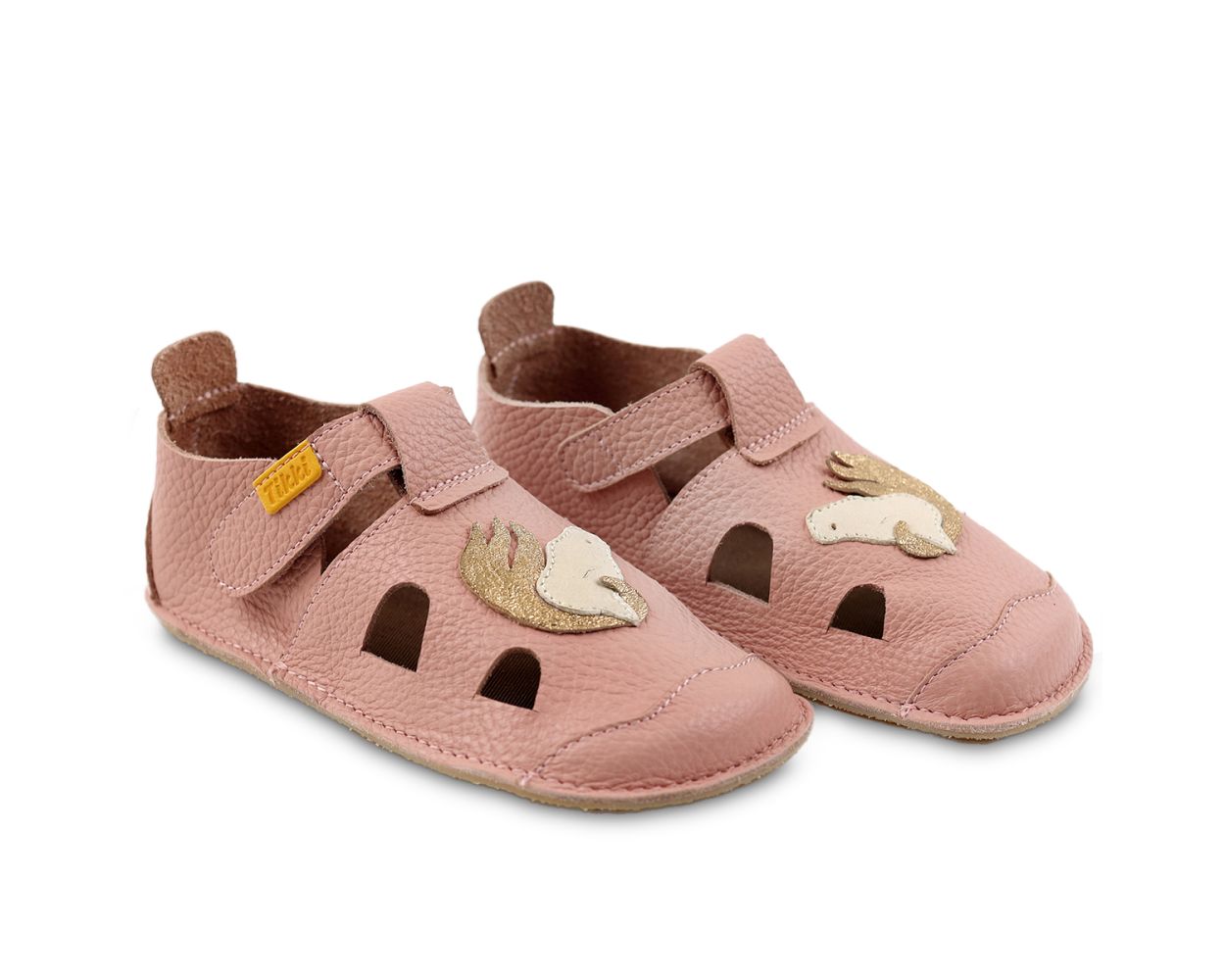 Tikki “Nido” means nest in Italian, with which Tikki names these as their most deserving barefoot shoes. The sandals are made of high-quality leather. The natural rubber 2mm ultra-flexible outsole allows the foot to move naturally. The textile of the insole prevents the foot from slipping while wearing the sandals. The toe shape of Tikki Nido sandals is foot-friendly and spacious on top, providing stretching room for all toes. The heel part of the Tikki Nido sandals is reinforced with a curved leather piece, preventing the shoe from collapsing at the heel and making it easier for the child to put on the sandals.