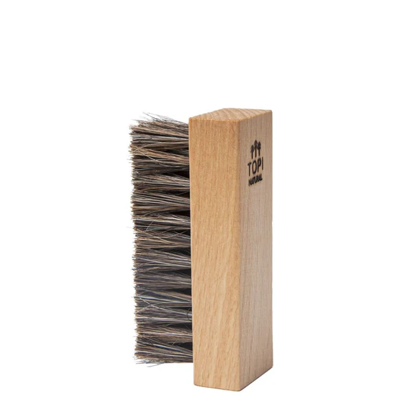 Product Features: The Topi Natural Soft Brush is handcrafted from natural materials. The 100% horsehair bristles, tied in dense bundles, provide a thorough yet gentle cleaning. The handcrafted hardwood handle is finished with natural linseed oil, and each brush features a unique Topi Natural logo stamped with a classic branding tool.
