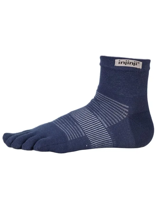 Toote omadused: Injinji Run keskmise kõrgusega varvassokid aitavad ära hoida villide ja hõõrdumiste teket, sest iga varvas on eraldi taskus. Sokid on pehmed ja vastupidavad, ilma häirivate õmblusteta. Injinji sokkide 5-varba-disain annab varvastele võimaluse loomulikuks asetuseks ja soodustab head kehahoiakut ja tasakaalu. Tänu eraldi õmmeldud kannaosale ja varvastele püsivad sokid ümber jala kindlalt paigal ka kõige ekstreemsemates tingimustes.
